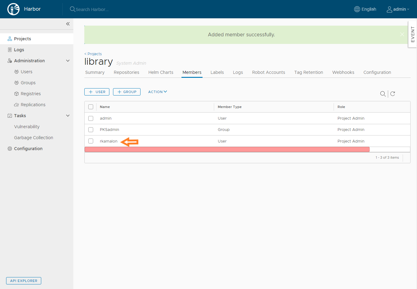Now lets login to harbor with the LDAP user we have added.