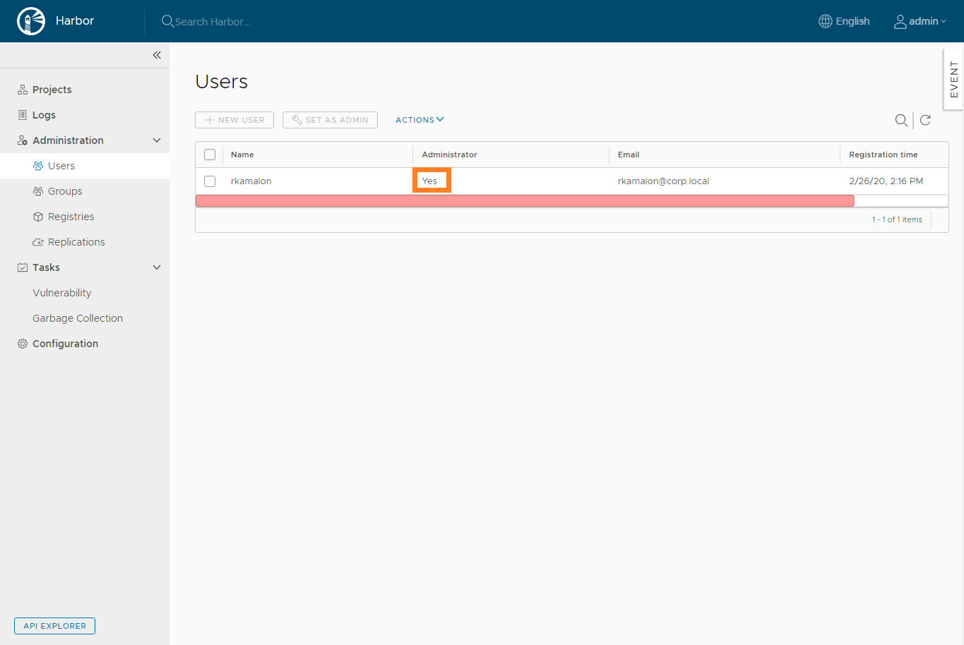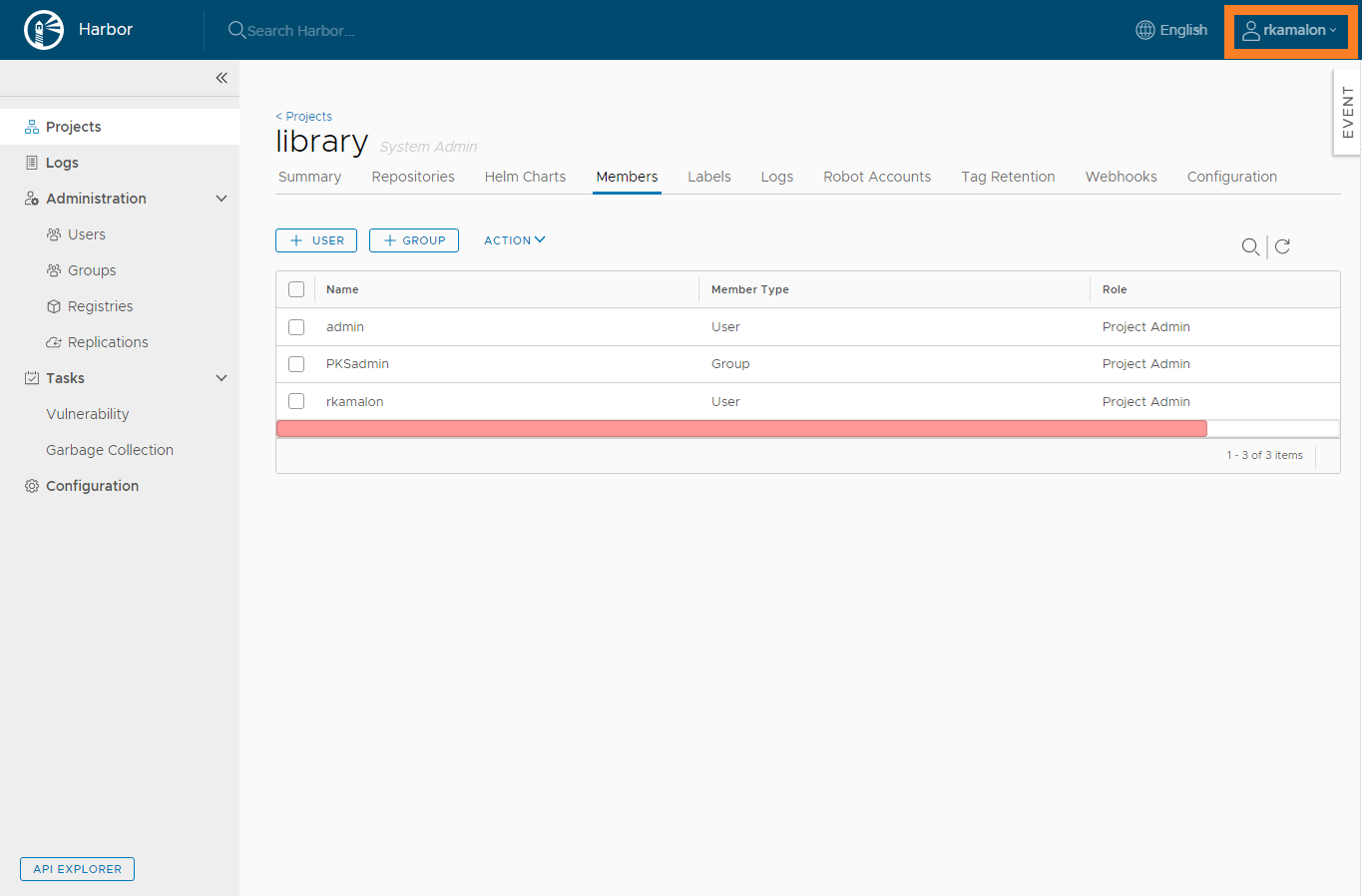 In the below screenshot, we can see that we have successfully logged into harbor with the LDAP user that is added.