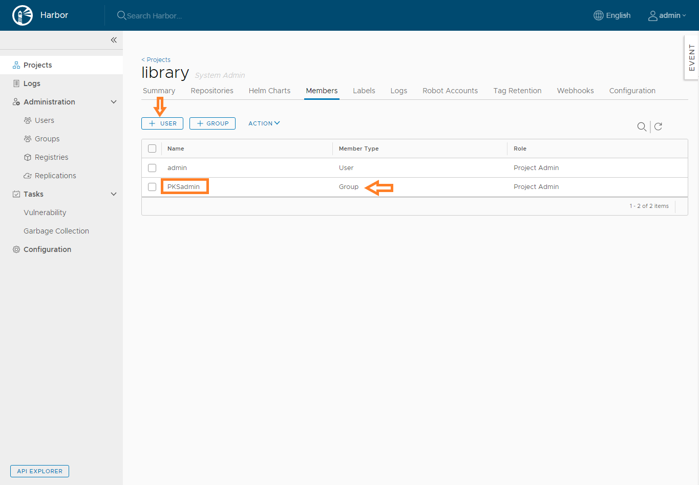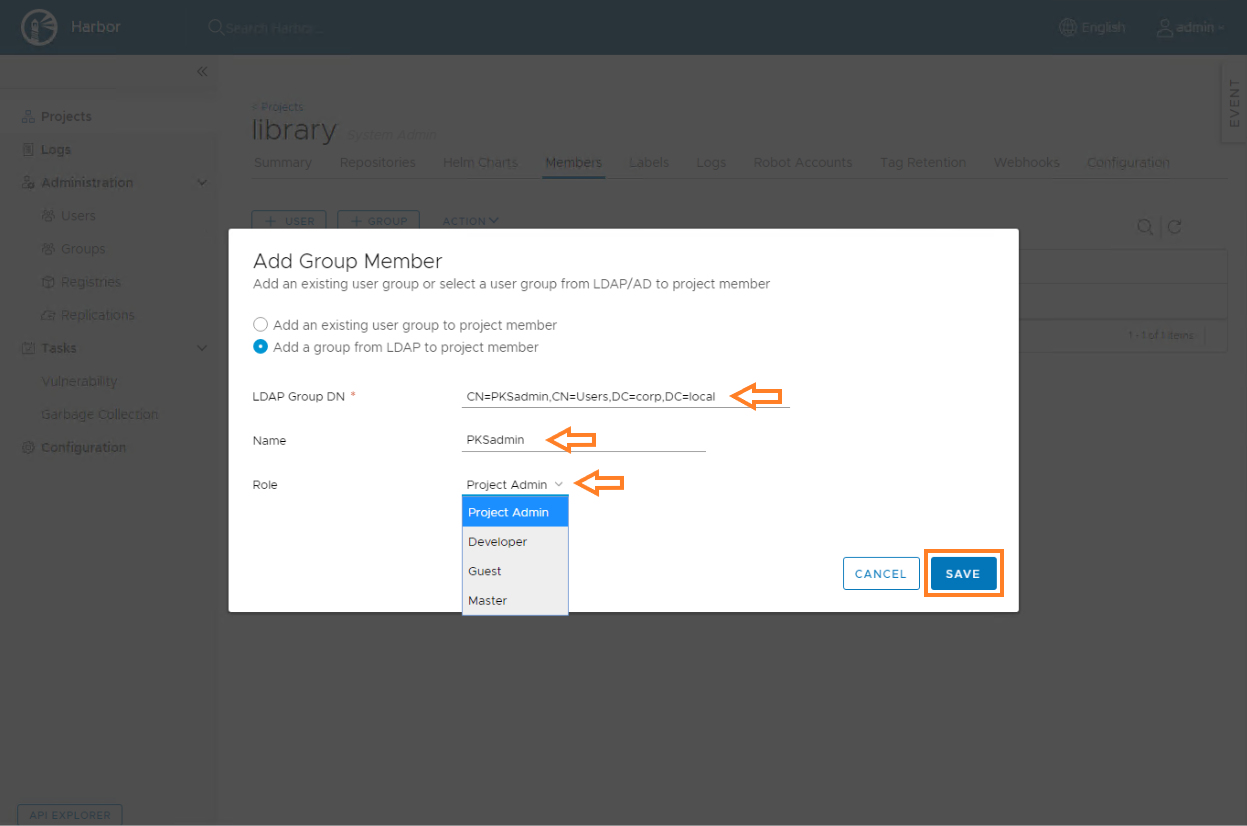 LDAP Group Admin DN: All LDAP/AD users in this group DN have Harbor system administrator privileges